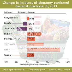It does not look right. Salmonella and listeria are not going away, but increasing. Foster Farms has not had such a problem with Salmonella as they have now. Tons of chicken infected causing disease in humans. It is increasing, not decreasing. Statistics can lie. Something looks wrong.